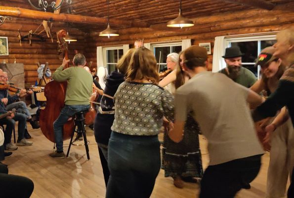Vi mødes ca. 20 mennesker og spiller og danser en hel weekend væk.